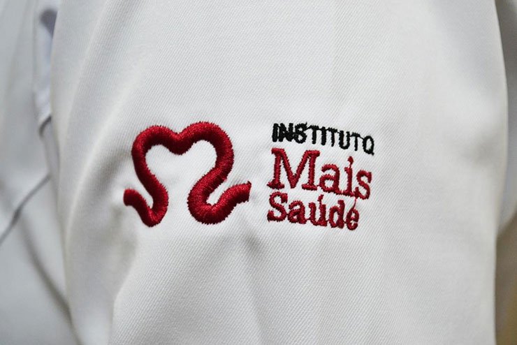 Cada funcionário recebeu um conjunto com o símbolo do Instituto Mais Saúde, responsável pelo gerenciamento do hospital.
