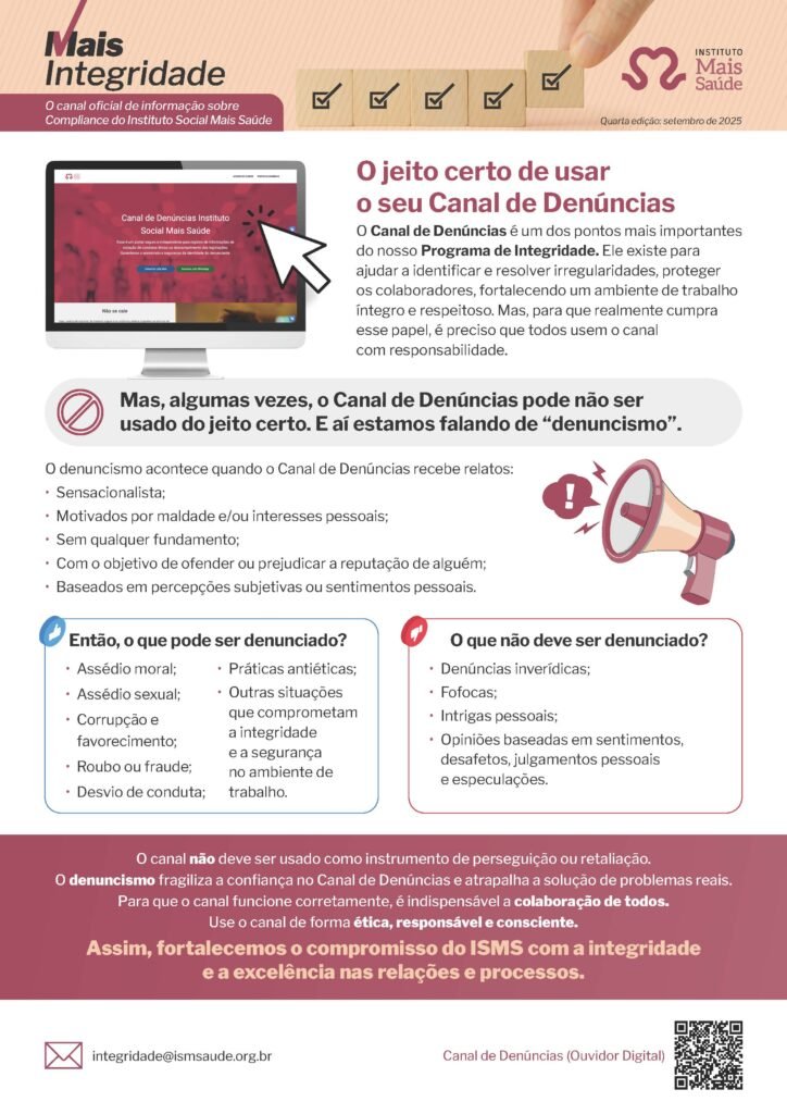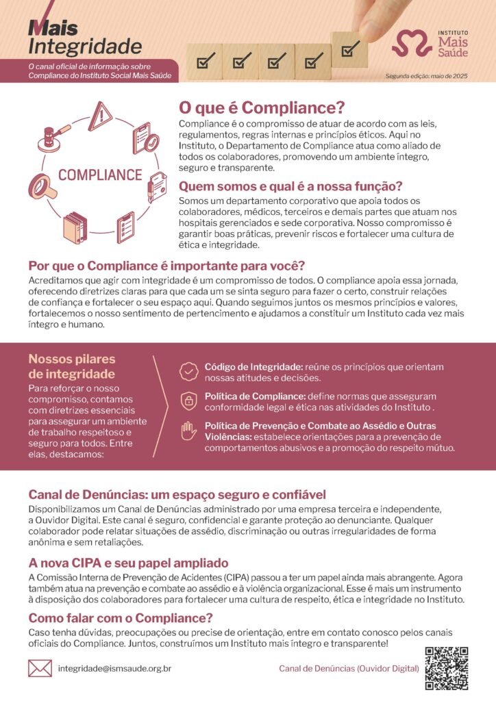 O canal oficial de informação sobre Compliance do Instituto Social Mais Saúde.